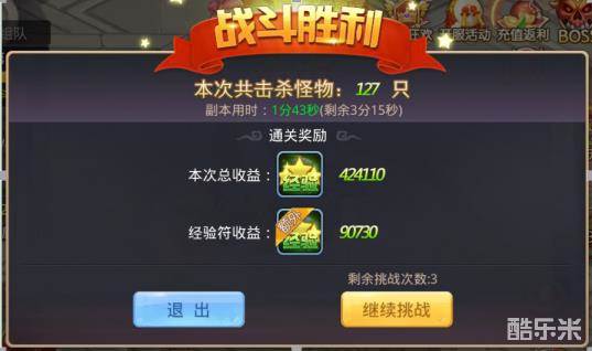 (2)每次挑战时间5分钟,进入副本完全击杀一波怪物后自动下一波,如此循环直至5分钟结束。