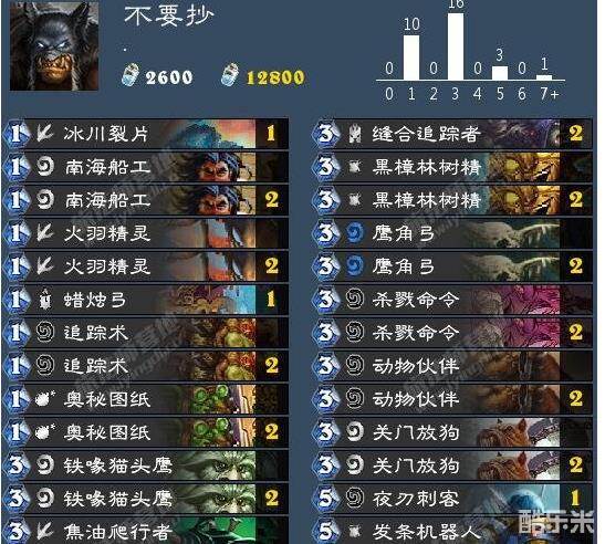 现在暴雪爸爸有一点人性化的设计就是前十个包保底橙和免费送一张橙(梦幻套牌:喵喵喵?),很多时候,哪怕只有一张橙,你也可以围绕这张卡做一套核心卡组(尤其是吉恩格雷迈恩和巴库),下面我贴一套非常简单的奇数猎,如果你有巴库,那么这套卡组就非常适合你了