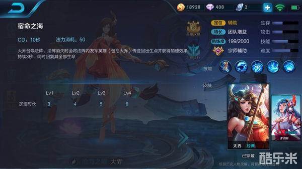 这炎炎夏季打开大乔的概况页面总是血脉贲张,那双大白腿...不好意思,跑题了。大乔的二技能宿命之海也是决定一个人适不适合玩大乔的关键,我曾多次遇到快要击杀敌方英雄或者多杀时,突然到家而一脸懵逼,配合大招也让大乔成了王者峡谷中唯一一个可以“击杀”队友的英雄,果然是拜倒在石榴裙下了。