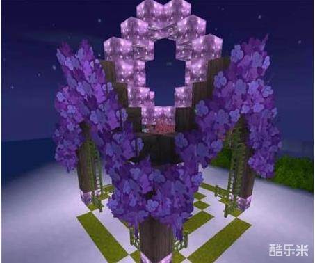 房子外面放上紫色树叶做装饰