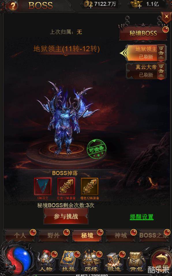 b. 秘境boss每天限制挑战次数,每天0点刷新挑战次数