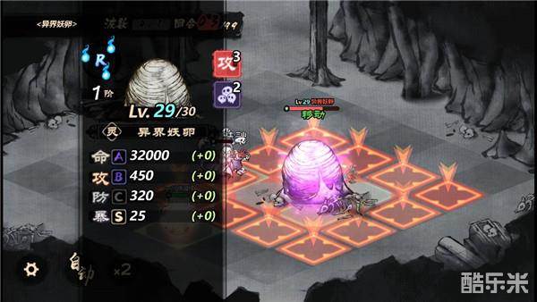 问题在于妖卵的打法,这地图的妖卵等级是29级,攻击范围是周围一格,每回合大概率能施放二连击,而且它攻击力非常高,脆皮吃个2连往往容易被秒。个人建议阵容里必须配备一个奶妈和一个降攻辅助,如果对自己的输出没有自信,可以选择用毒磨过去,只要能保证续航就可以了。