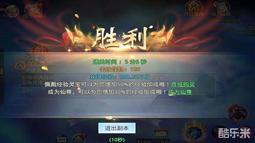 与其他单纯刷怪打boss的副本不同,“灵魂星域”除了可以正面硬刚之外,玩家还可以动用副本中的“鼓舞”等策略性的功能来提升自己在副本中的战斗力。佩戴经验灵宝则可以为玩家增加额外50%的经验加成,仙若是尊玩家还可以再增加30%!一趟出来绝对能让你的经验条猛涨一下哦!