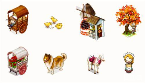 室外装饰也新增了很多,秋日暖阳野外灯、秋日暖阳稻草堆、玫瑰马车等,再配合上秋日暖阳小鸡、牧羊犬、棕马和白马等可爱的动物,形成了秋日田园般的特色风景,闲适又温暖,正是秋天最好的样子。