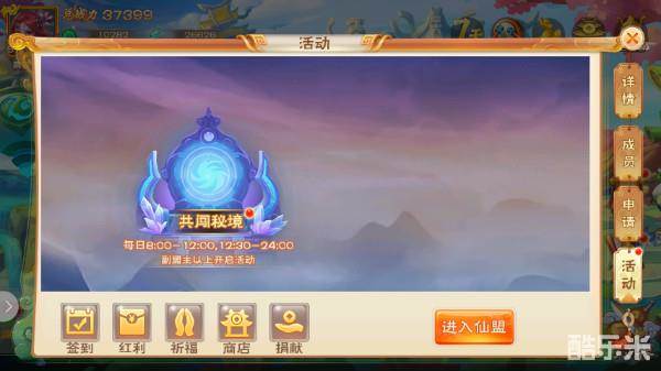副盟主以上权限的大侠,可以在仙盟中开启共闯秘境活动。每天的8:00—12:00,12:30—24:00两个时段,秘境活动将会开启。每个时段大侠都有两次挑战机会,一天一共可以挑战4次。