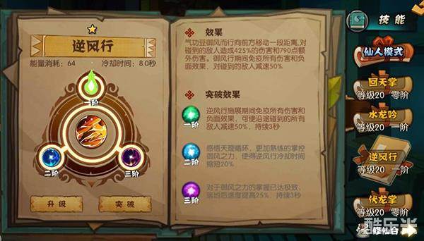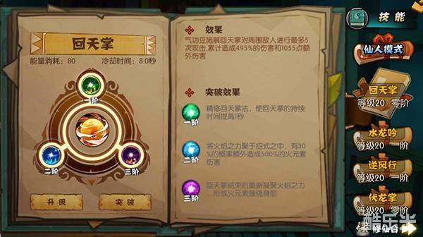 同样是范围伤害,但又有更强的控制效果,突破一阶后找个角度一招能把地图上所有小怪拉到你身边,接个回天掌就全清空了,用在护送类地图上简直不要太爽。注意技能的comb,虽然有自动,但是要站在仙阶榜之巅,练好操作还是必不可少的!