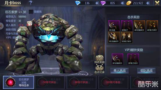 BOSS刷新时间为30分钟一次,每日可参与两次,玩家可以单人或组队挑战,将BOSS击杀后会根据排名给玩家发当奖励。伤害排名越靠前则奖励越多。