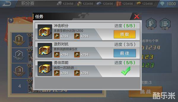 除了挑战会获得积分和奖励,每个赛季中还有多个任务,参与积分赛并一定条件,也可以解锁对应奖励。如累计挑战次数、3连胜等。