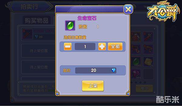 上架物品最低价格为20钻石,出售成功后,系统会收取5%的交易税。