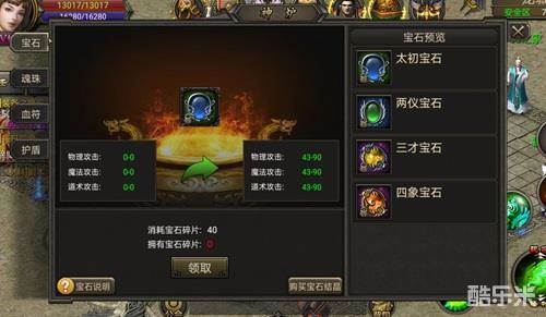 宝石掌管所有类型的攻击力,包括物理、魔法、道术攻击,获得后能获得极大的伤害提升,神挡杀神,战无不胜!魂珠则掌管暴击相关的力量,包括暴击率、暴击力,运气好的时候能让你一刀秒杀不是梦!而血符则司职生命值,简单粗暴地提高最大生命值可谓说是万金油,谁用谁说好!护盾则专门负责防御相关,能极大提升物防、魔防,一夫当关万夫莫开!
