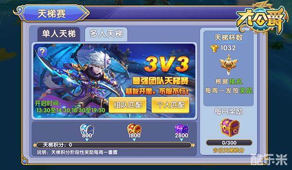 多人天梯赛为3V3的团队战斗,开启时间为13:30-14:30和18:30-19:30,可以点击个人匹配随机进入队伍,也可以提前组好队友进行组队匹配,消灭全部敌人获得胜利,存活人数相同则判定为平局,结算时根据双方平均实力对天梯杯数进行增加或者减少。