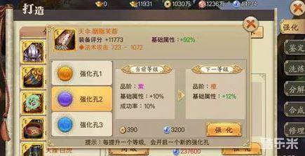 每件装备有一定数量的强化孔,等级与品阶越高,强化孔越多。随着强化孔的递进,所需要的灵气也越多。