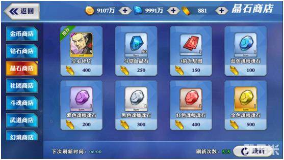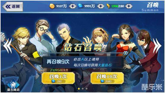 召唤一次的消耗其实并不高,但是十连抽的魅力太大,小编我玩《超燃斗魂》的时候都是先默默地攒钱直接去十连抽的,毕竟像我这样的“非洲脸”想单抽出A级以上的魂师实在是太难了……但是!!《超燃斗魂》中有一个很棒的设定:每一次的召唤都可以获得一定数量的晶石, 而晶石可以在“晶石商店”换取到魂师碎片以及斗铠和魂师升星的材料,是不是很划算呢?