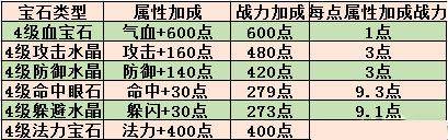 从上面的数据看来宝石带来的属性和战力是非常可观的。宝石的等级越高加成的属性与战力也起高。土豪玩家前期宝石镶嵌可以升级至6到7级。小康玩家5级左右就差不多。平民玩家量力而为。另外,上面的每点属性加成多少战力也可以运用到洗炼装备时来计算装备属性所加成的战力。