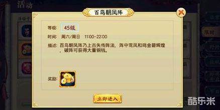 蜀山战纪手游百鸟朝凤阵解析,除了真气之外,金币在游戏中也是一种非常需求的资源,大量的铜钱消耗也是十分不易的。那么新版本也给大家带来了铜钱的获取方式,那就是新的周末活动,百鸟朝凤阵。