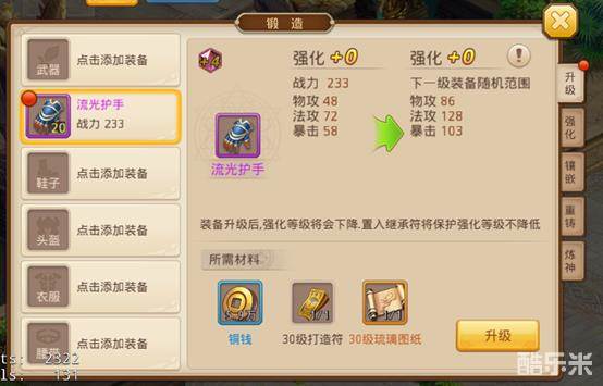 升级装备是《绝世唐门》中提升实力最直接的方式,玩家每十级都可以在锻造中升级全身的六件装备,升级装备需要打造符或者裁缝符加上各职业的设计图纸,并支付一定的银魂币作为升级费用即可。