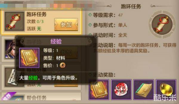 平时可以多积攒一些任务品和银两用来跑环。每周跑环任务想要练级快速,是一定要做的,经验差距很大。