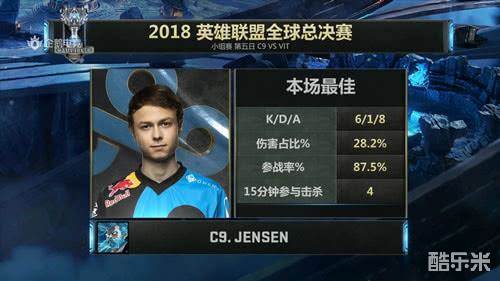 在C9对抗VIT的比赛中,中单Jensen选出了支援能力超强的时光,对方则拿出了前些日子表现良好的艾克来应对。比赛前期就打的异常火热,你来我往有攻有守。但是中期VIT没有拿到优势,被C9一波波的开团弄的头痛不已,最后在27分钟的时候C9拿下大龙取得胜利。