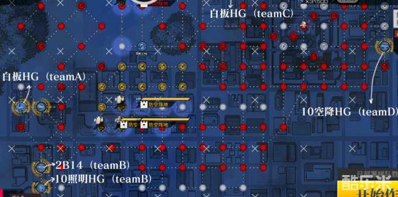 4、回合四,B小队出击拆除左下建筑群,HG打头迫击炮紧跟,迫击炮停在雷达右侧1格拆3个军方塔,HG蛇皮走位拆被包围的下方3个塔,拆不完则进渠保护好自己,在第五回合补刀