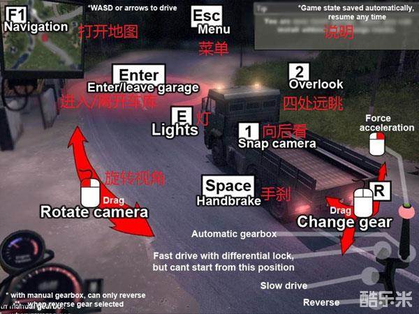 R--换档,开始切换到手动变速箱,或改变自动变速箱齿轮/开关,使用鼠标移动变速箱手柄。