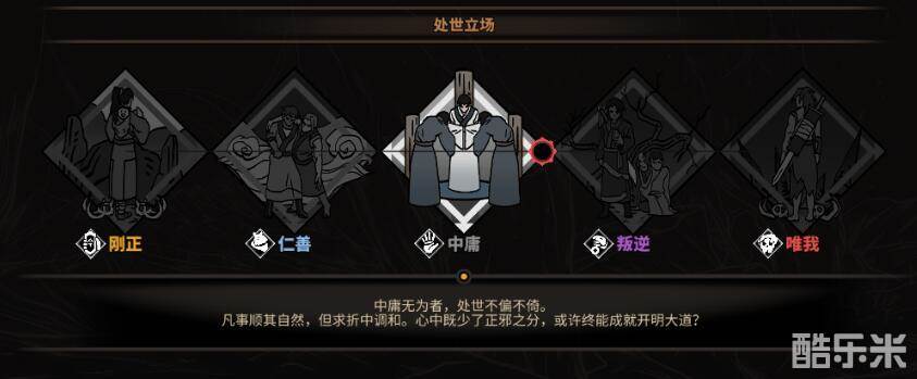 人物立场分为五种,分别是:刚正、仁善、中庸、叛逆、唯我