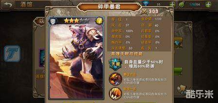 神图腾破甲暴君英雄天赋属性介绍,本期小编给大家带来的,依旧是游戏当中的三星卡牌一张。这是一个肉盾型的卡牌,拥有很高的血量和防御,但是攻击方面是比较脆弱的。那么接下来,让我们来了解下这张卡牌的属性吧。
