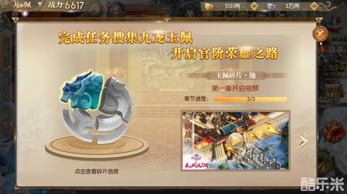 改:增加九龙玉阙的碎片收集激活视频活动,提升前期目标感,通过一定方式填充并过渡前期无聊时间