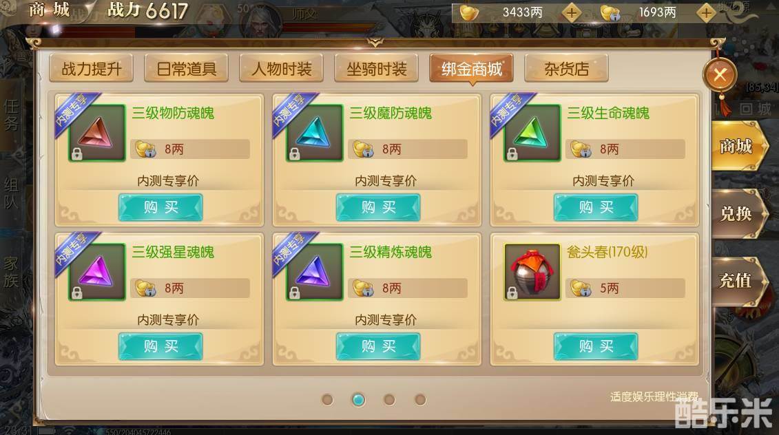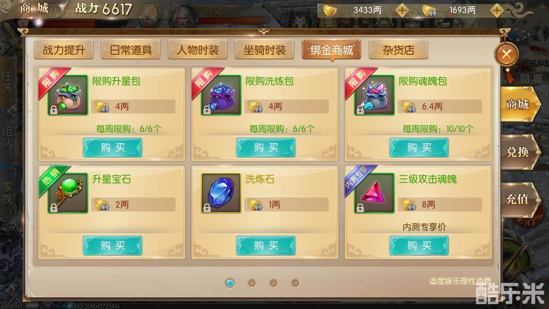 改:绑金将拥有金子的大部分作用,可以用于购买升星石、魂魄石,并且在绑金商城中增加每周限购的升星石礼包和魂魄石礼包,绑金增值了!