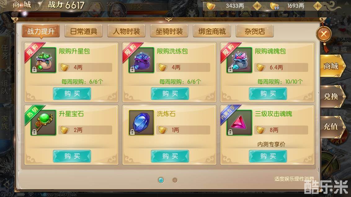 改:金子商城中增加每周限购的升星石礼包、魂魄石礼包、洗练石礼包,勇士可以买到更多东西咯。