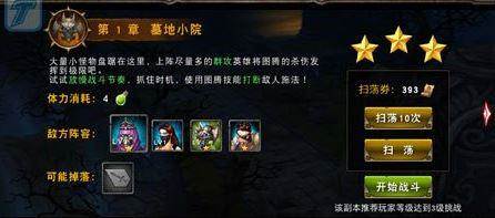 神图腾墓地小院第一章节三星通关技巧,副本是游戏当中的主要玩法,也是游戏当中剧情的衍生,玩家可以通过副本获得大量的经验和奖励。但是副本有时候并不是俺么好通关的,就看小编给你带来更多的精彩内容详细介绍吧。