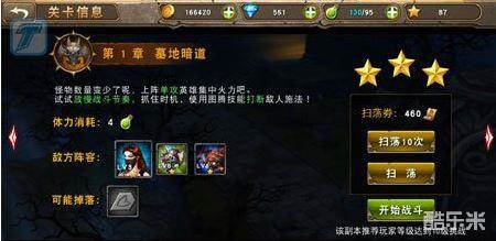 神图腾探秘墓地暗道副本三星攻略,本关卡当中,玩家需要面对的是比较少的敌人。但是关卡中大多数的敌人都是远程攻击,所以对于玩家们来说,威胁也不算小。而玩家们如果想要顺利的通关本关卡的话,那么还是需要注意一下小心敌人的攻击哦。