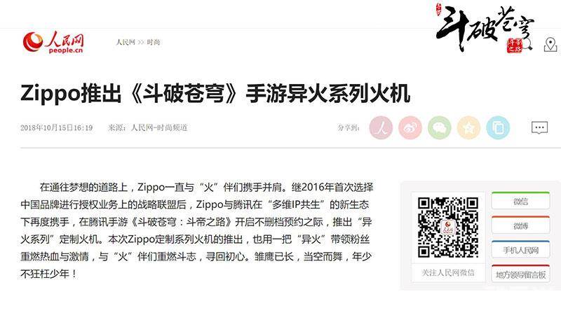 创意设计赛事登陆人民网 《斗破苍穹手游》X Zippo设计大赛完美落幕