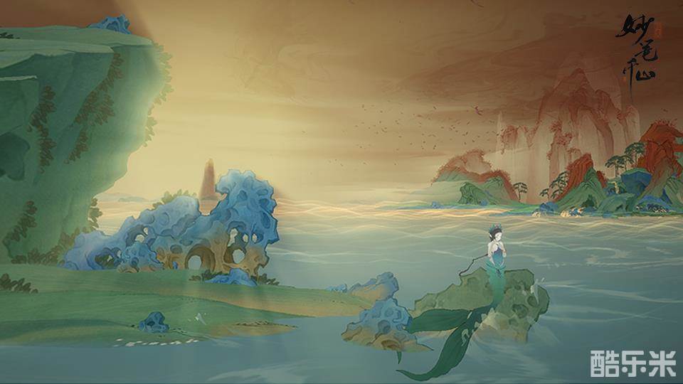 《绘真·妙笔千山》中的鲛姝下裹青绿色的长裙,裙摆包裹成鱼尾的造型,不像其他地方鲛人的设计,直接露出长着鱼鳞的鱼尾。这是希望玩家能抛去鲛人不同寻常的身份,将其视为普通人类,便能更好地理解她的故事和她的情感。