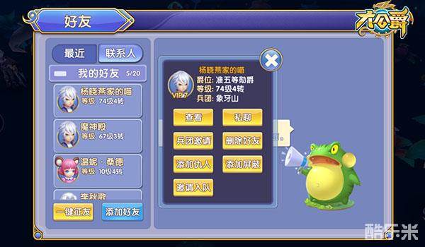 添加后点击头像-好友,可以在联系人中看到所添加的好友,以及可查看对方是否在线,若是在线便可私聊邀请对方一起做任务打怪,商讨提升战力的方法,说不定能得到意外的惊喜呢。
