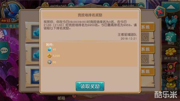 4、竞技场:竞技场提升排名可产出金币,每日保持相对应排名也可以获得金币。