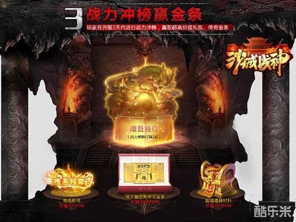 自玛法大陆诞生之始,登上排行榜便是整个沙城的最高荣誉。为了表彰这些英雄,我们准备了战力冲榜赢金条活动,玩家在开服3天内进行战力冲榜,排行榜第1名即可获得周大福定制金条、绝版称号“唯吾独尊”及超值道具材料等丰厚奖励。快向我们证明吧,你就是那个天之骄子,我们没有看错人。