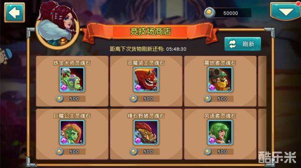2、竞技场商店会有刷新时间,定点更新可以兑换的道具及英雄碎片,使用少量竞技场币也可以刷新兑换道具,时间可以在竞技场商店内查看到。