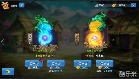 普通点将消耗银元宝,每天免费5次,10分钟冷却时间