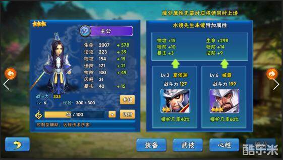 将领35级之后后解锁心性系统,可提升将领的属性,心性系统分5种(忠诚、勇武、智谋、魅力、统帅),6阶,每阶分10级。心性提升材料在世界BOSS系统中产出。