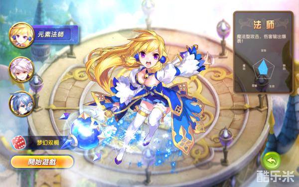 元素法师:高攻击、血防较低,魔法系,伤害可是很给力的噢,妹子的首选噢