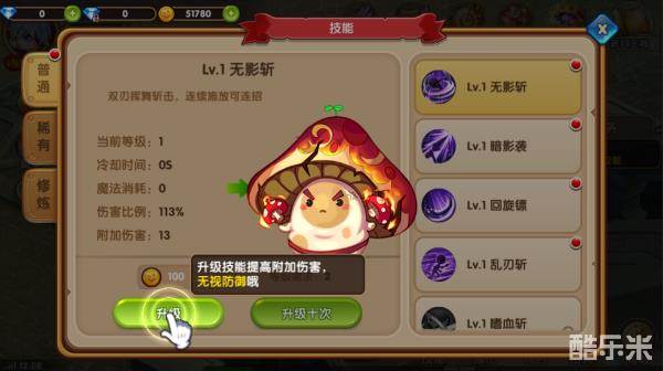 普通:就是我们角色的使用技能啦,可以直接用金币进行升级噢,最高不能超过角色等级喔