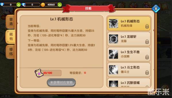 稀有:是我们的宠物技能啦,可以给我们的宠物技能进行升级,提升宠物的战斗力喔