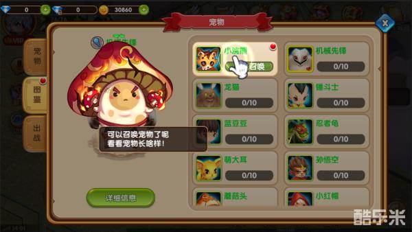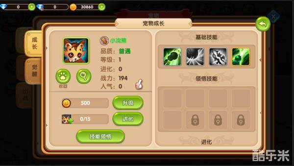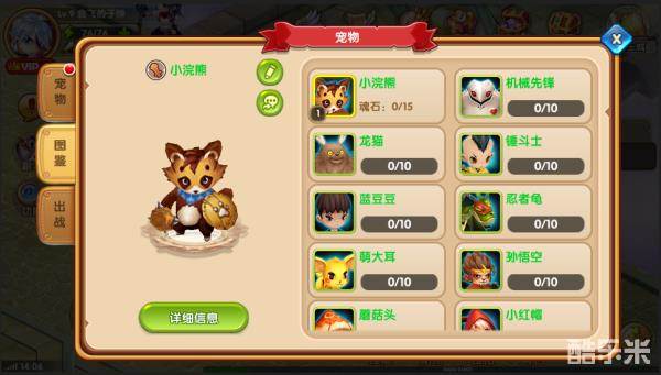 点击宠物详细信息可以对宠物进行升级、进化操作喔;
