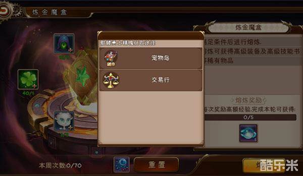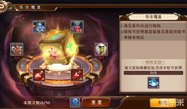 在《勇者荣耀》中达到一定的等级后,就可以开启炼金魔盒周常,一周内可以进行70次熔炼,每次所需要耗费的材料都是随机的。