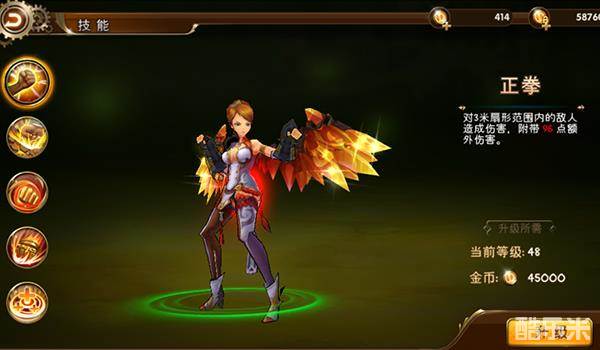 正拳,可对一定范围扇形范围内的敌人造成伤害,升级技能还能附带额外伤害;