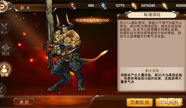 秘境探险经验丰富通过每日必做或者是副本都可以进入其中。秘境探险的每日最大的经验收益次数可达到100次,前20次均是高倍经验,所以是获得经验的首选来源。如果做完每日任务还有时间的话,建议可以将100次收益挂机完成哦。
