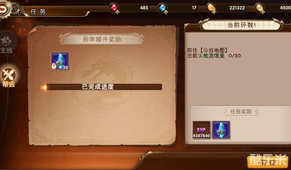 除了秘境探险之外,公会周常任务也是经验多多,不过公会周常任务需要条件限制,首先就是需要加入一个公会。虽然每周次数有限,但是做完之后也是经验多多,在前期的时候可以帮助提升不少的经验。