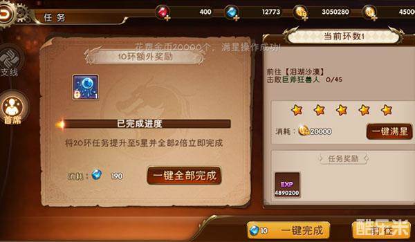 除此之外,每日还可在NPC处领取20次首席任务,首席任务刷新到5星,累积下来经验也是妥妥的不错。