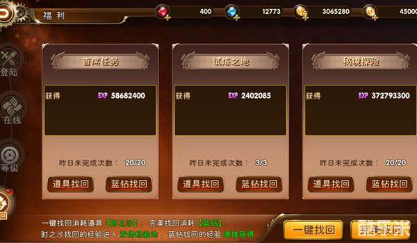 以上就是小编为大家推荐的经验获取来源顺序啦,除此之外,通过商城可以购买双倍经验储存道具,使用之后可以储存双倍经验值。如果有前一天遗忘的活动未参加,在日常资源找回中也可以通过钻石或道具找回大量经验哦!