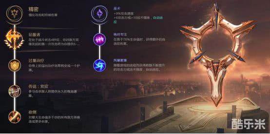 由于高ad加成和打肉能力较差所以选择征服者。砍倒可以有效弥补打肉伤害,ad标配。